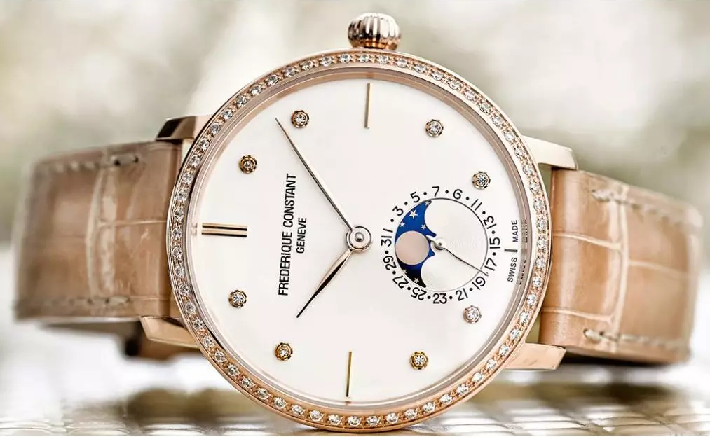 CONSTANT 康斯登 自製機芯 超薄 月相 鑽框 機械女腕錶 |