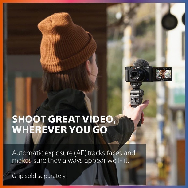 Sony 索尼 ZV-1 数码相机,内容创作者,Vlogging和YouTube,带翻转屏幕,内置麦克风,4K HDR 视频,触摸屏显示,实时视频流,网络摄像头